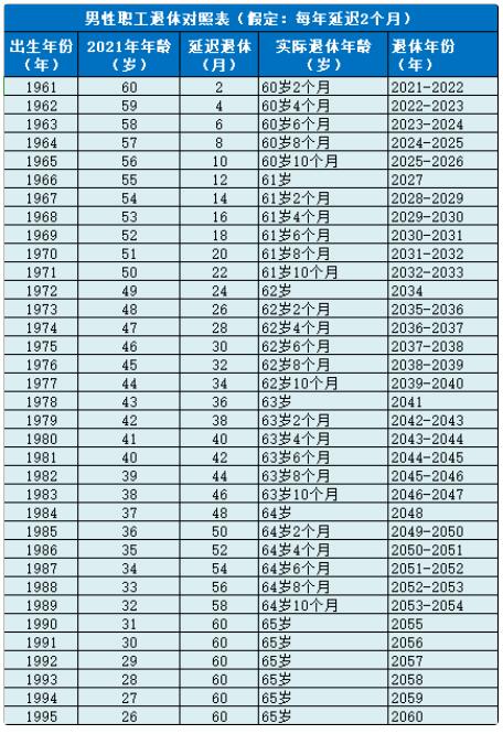 延迟退休基本上是已成定局,总体是渐进式。具体延迟退休的年龄怎么计算,目前还没有公布最终的计算公式。目前,有一些媒体上公布了初步的计算公式(是否真实,不太确定),具体退休年龄如下: